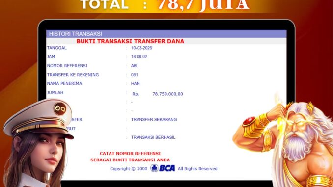 Bukti transfer yang dapat anda lihat adalah bukti SAH / VALID yang langsung di dapatkan melalui bukti transaksi dari Bank yang digunakan untuk pengiriman dana pada rekening pemilik user id. Terima kasih kami sampaikan kepada para pengguna setia DEWALIVE yang telah menggunakan situs kami, sebagai Bandar Terpercaya yang pastinya membayar semua kemenangan member hingga lunas. Apakah DEWALIVE PENIPU ? Reputasi “DEWALIVE TERPERCAYA” sudah sangat melekat.